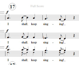 I have chosen a setting of two of her poems related to art and music. Both “If I can stop one heart from breaking” and “I shall keep singing!” have been set by many composers, and so my goal is to find a way to say something new with both texts – something I think I have successfully done. These poems are of particular interest in Dickinson’s oeuvre: they do not follow the typical metric and rhyme schemes she used. And so, I have freely adapted the text, and added my own to the bridge. The full lyrics, as they are currently, are shown below.